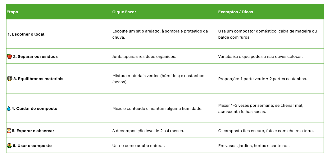 A compostagem é uma maneira natural e simples de transformar restos de comida e folhas secas em adubo rico em nutrientes, que ajuda as plantas a crescerem fortes e saudáveis.
